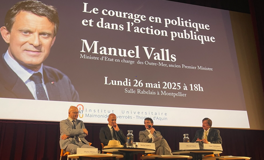 L’Institut Maïmonide a reçu le 26 mai dernier, salle Rabelais de Montpellier devant plus de 300 personnes, le Ministre d’Etat en charge des Outre-Mer Manuel Valls, pour une conférence-débat sur le thème: « Le courage en politique et dans l’action publique. » Après l’ouverture par Charles Ebguy, président délégué de l’Institut Universitaire Maïmonide-Averroès-Thomas d’Aquin, l’ancien Premier Ministre a répondu aux […]