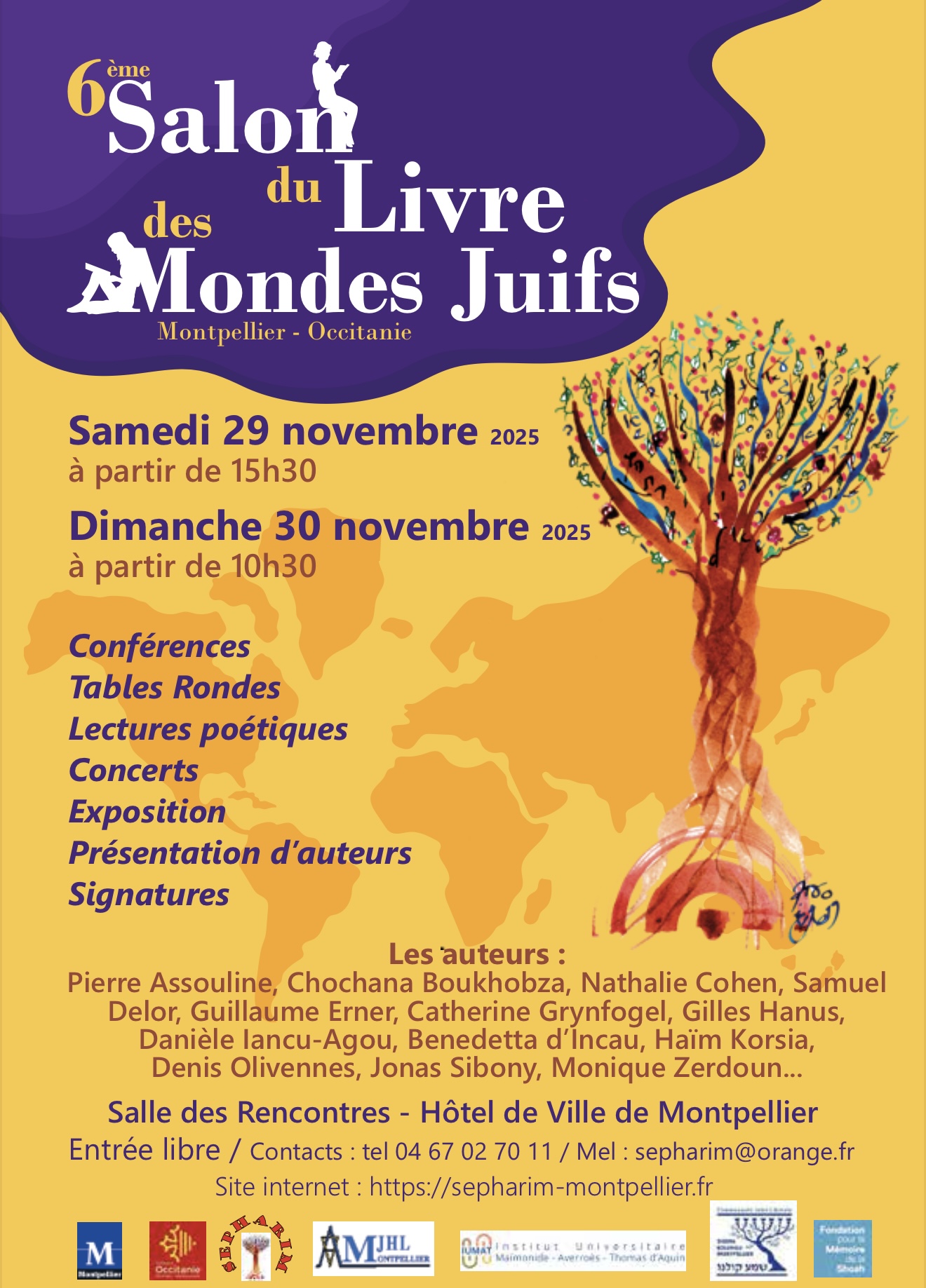 6e édition du Salon du Livre des Mondes Juifs, les 29 & 30 novembre en l’Hôtel de Ville de Montpellier. Avec les auteurs: Denis Olivennes, Nathalie Cohen, Pierre Assouline, Jonas Sibony, Gilles Hanus, Haïm Korsia, Chochana Boukhobza, (liste non exhaustive). Organisé par l’association Sepharim, avec l’AMJHL, l’Institut Maïmonide et la CJLM. Salle des Rencontres – […]